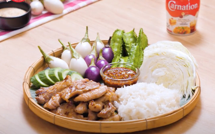 1.นำเนื้อหมูมาหมักด้วยนมข้นจืดคาร์เนชันพร้อมปรุงรสด้วยน้ำปลาร้า สามเกลอ น้ำมันหอยและน้ำตาลทราย